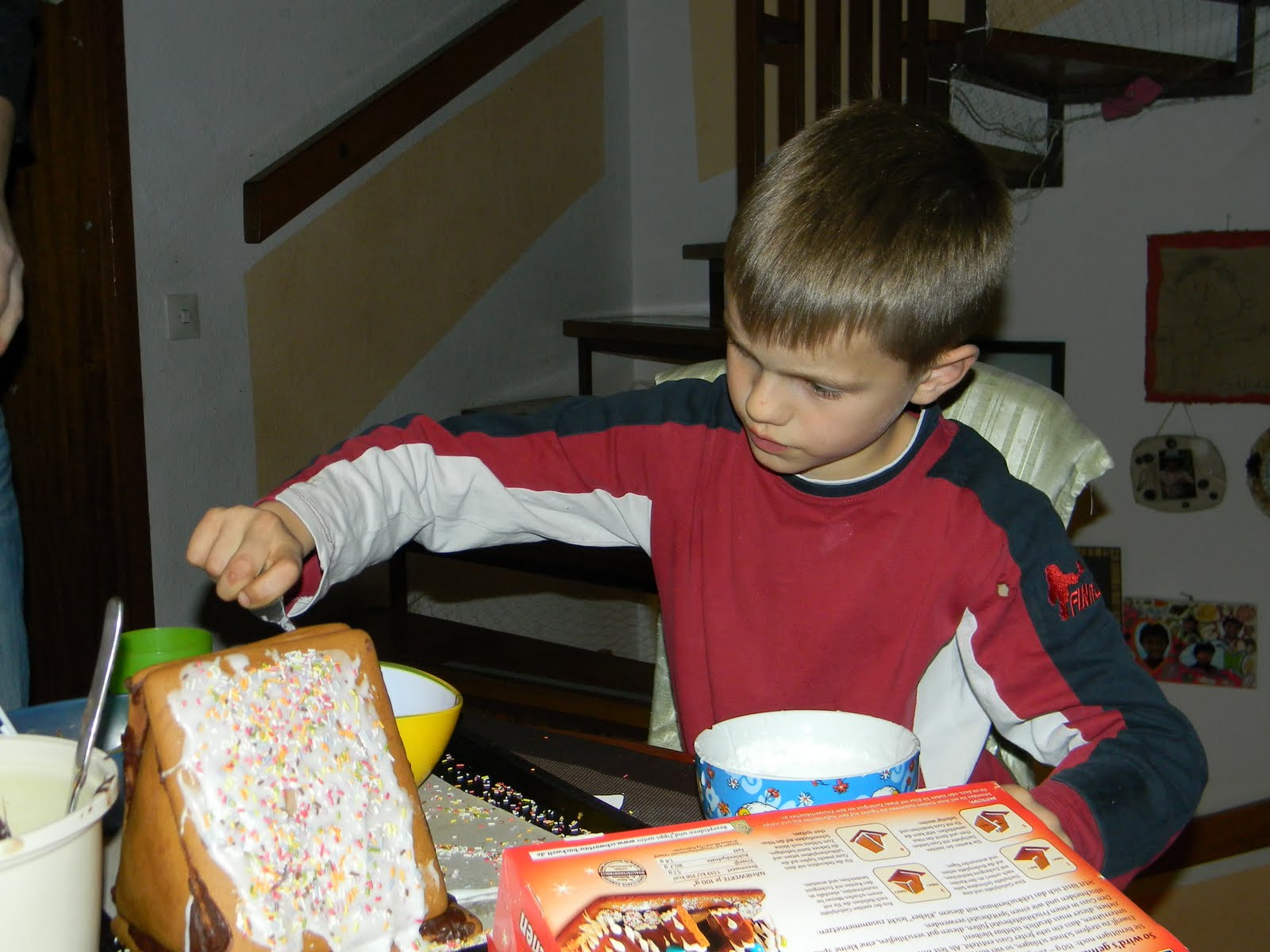 I just got a new camera for my birthday. I do not know how to use it yet. Here are some photos of Sarah and a friend making gingerbread houses last Friday. We will plan on doing a craft every Friday before Christmas. I hope my photography improves over time. I may need to read the instructions on how to use this camera. I need to wear my glasses, because I can not see the instructions. Getting old is not so fun!
